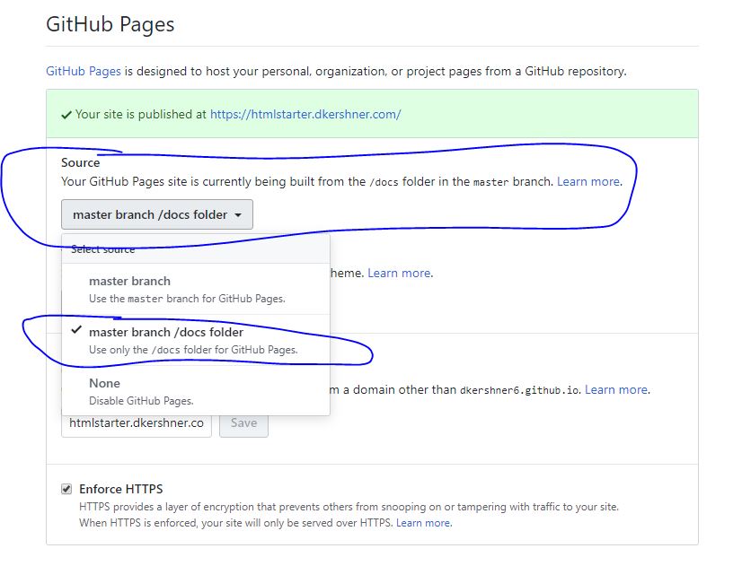 Change the CName/Custom Domain value in the UI or in the /docs folder to