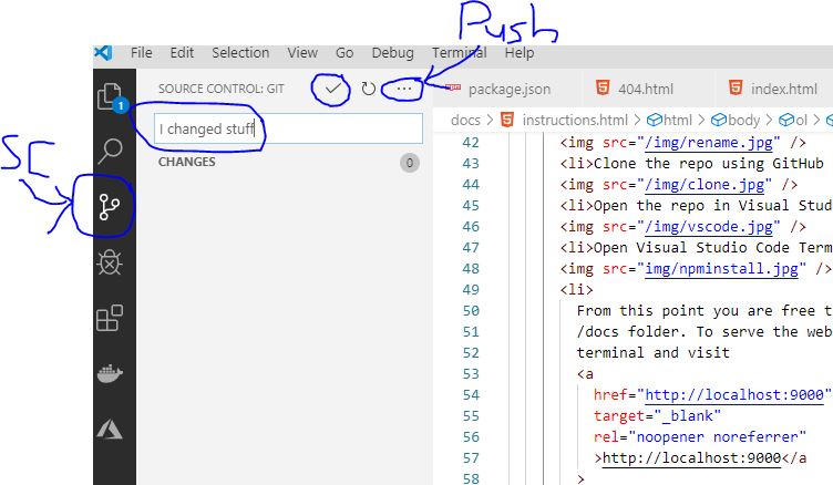 'Source Control' in VS Code, then create a commit, then click 'Push'.