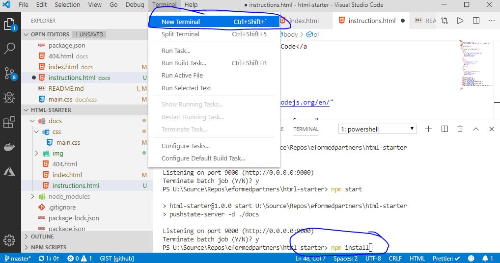 - Open Visual Studio Code Terminal and type 'npm install'